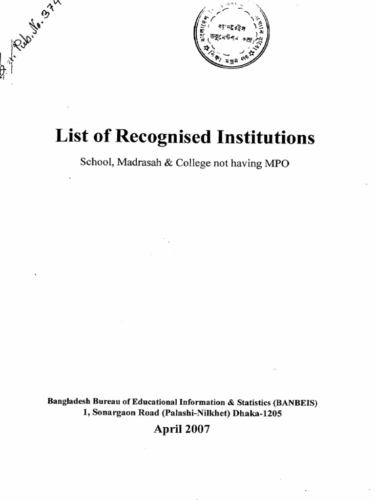List Of Recognized Institution School Madrasa And College Not