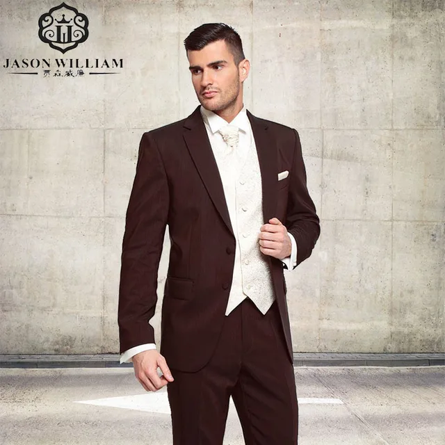 2017 Latest Coat Pant Designs Brown Groom Tuxedos 3 Piece Slim Fit