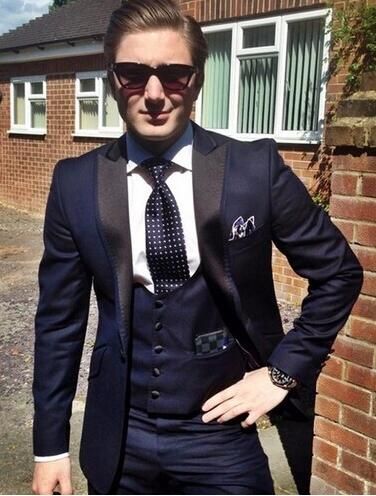 2017 Custom Made Dark Blue Men Suit Bespoke Men Slim Fit Wedding