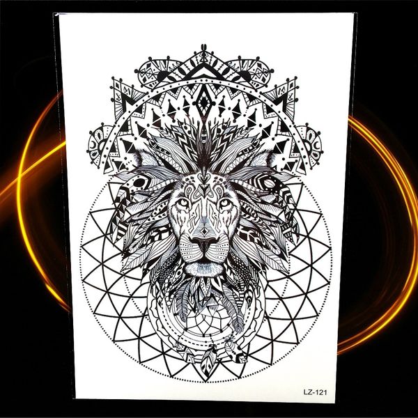 Black Henna Temporary Tattoo Indian Tribal Lion Totem Waterproof Fake Flash Tattoo Stickers For Women Men Body Arm Legs Neck Art Custom Make Fake