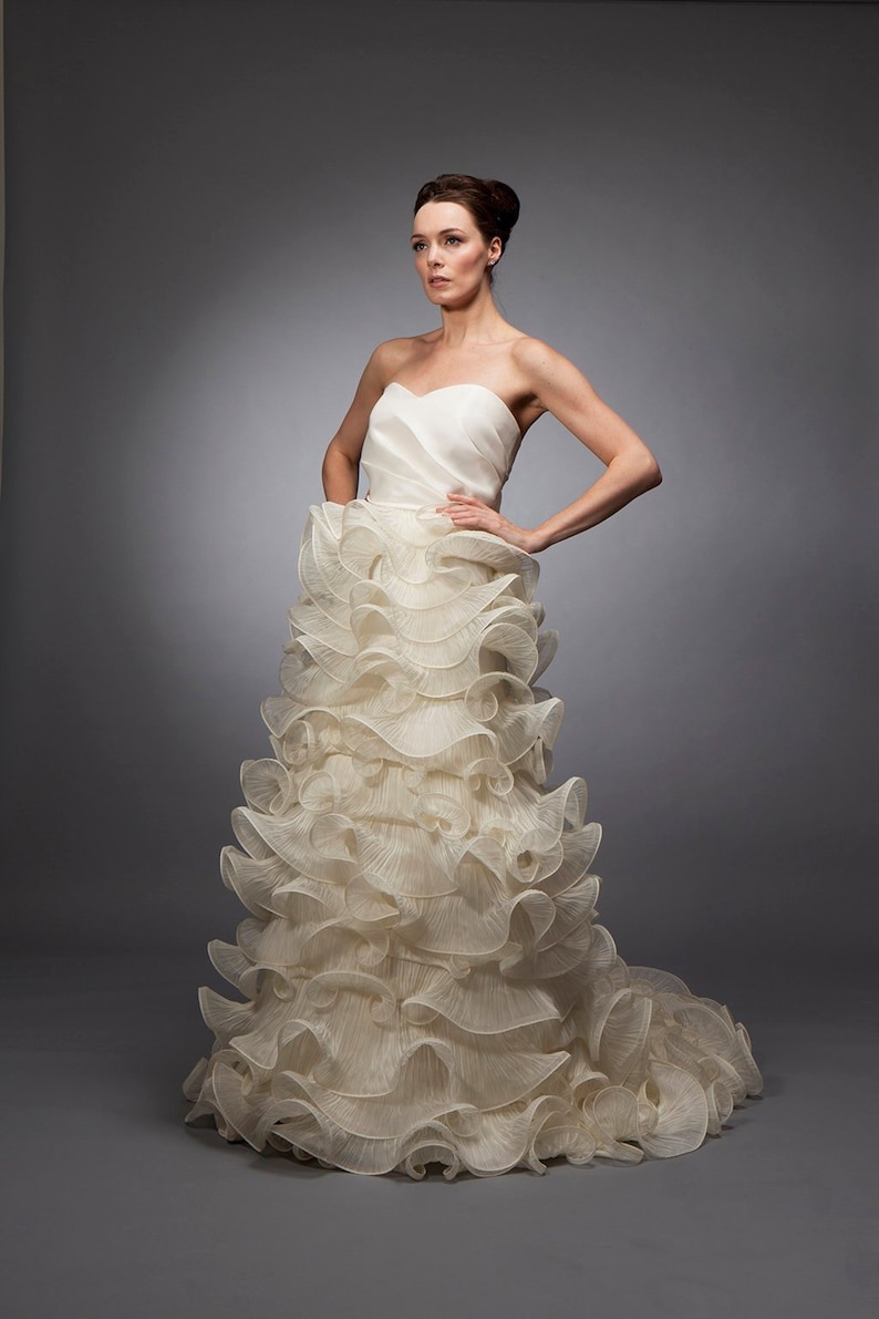 Silk Gazar Gown Wedding Dress Bridal Gown Draped Top Dress Organza Ruffle Gown Ruffle Skirt Pleated Organza Strapless Gown