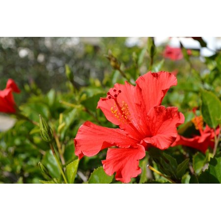 Canvas Print Garden Flower Rose Of Sharon Red Flower Hibiscus Stretched Canvas 10 X 14