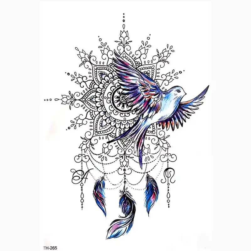 Diy Body Art Temporary Tattoo Colorful Dreamcatcher Swallow