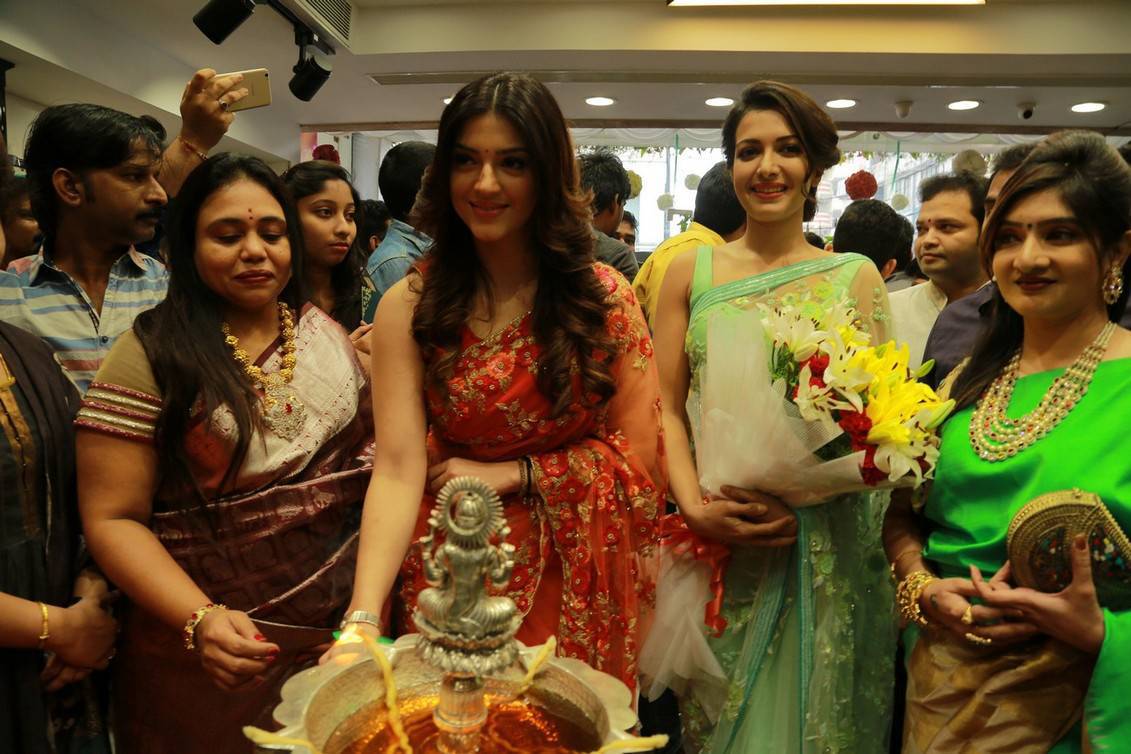 Mehrene Kaur In Transparent Red Saree At KLM Fashion Mall Launch