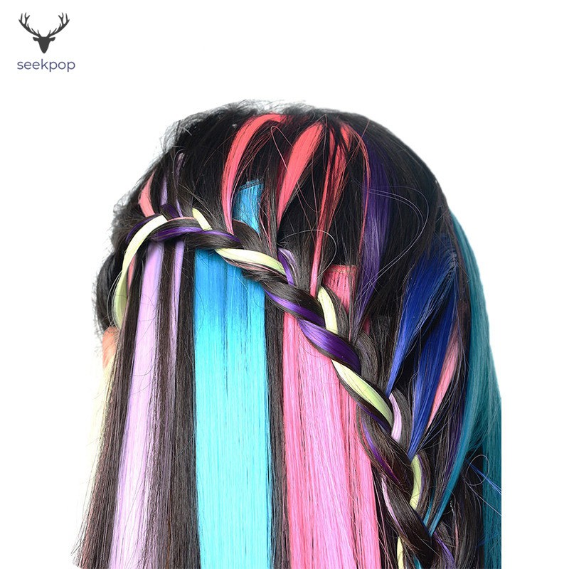 12 Pcs Colored Party Highlights Clip Hair Extensions Multi Colors Hair Streak Synthetic Hairpieces Shopee Philippines