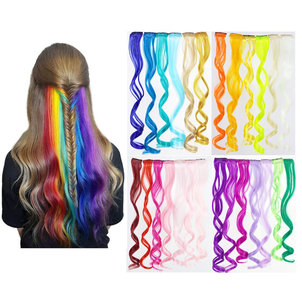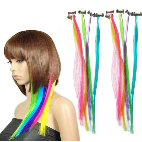 1pack 5pcs Assorted Color Party Highlight Clip In Hair Extension 17cm Colored Shopee Philippines